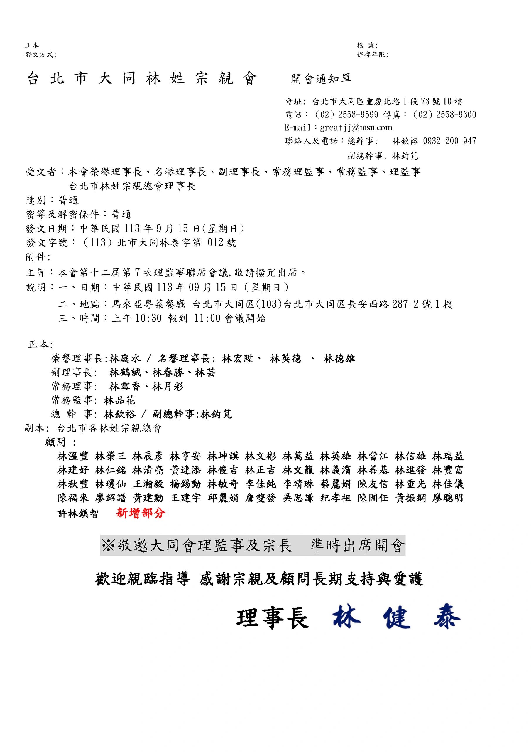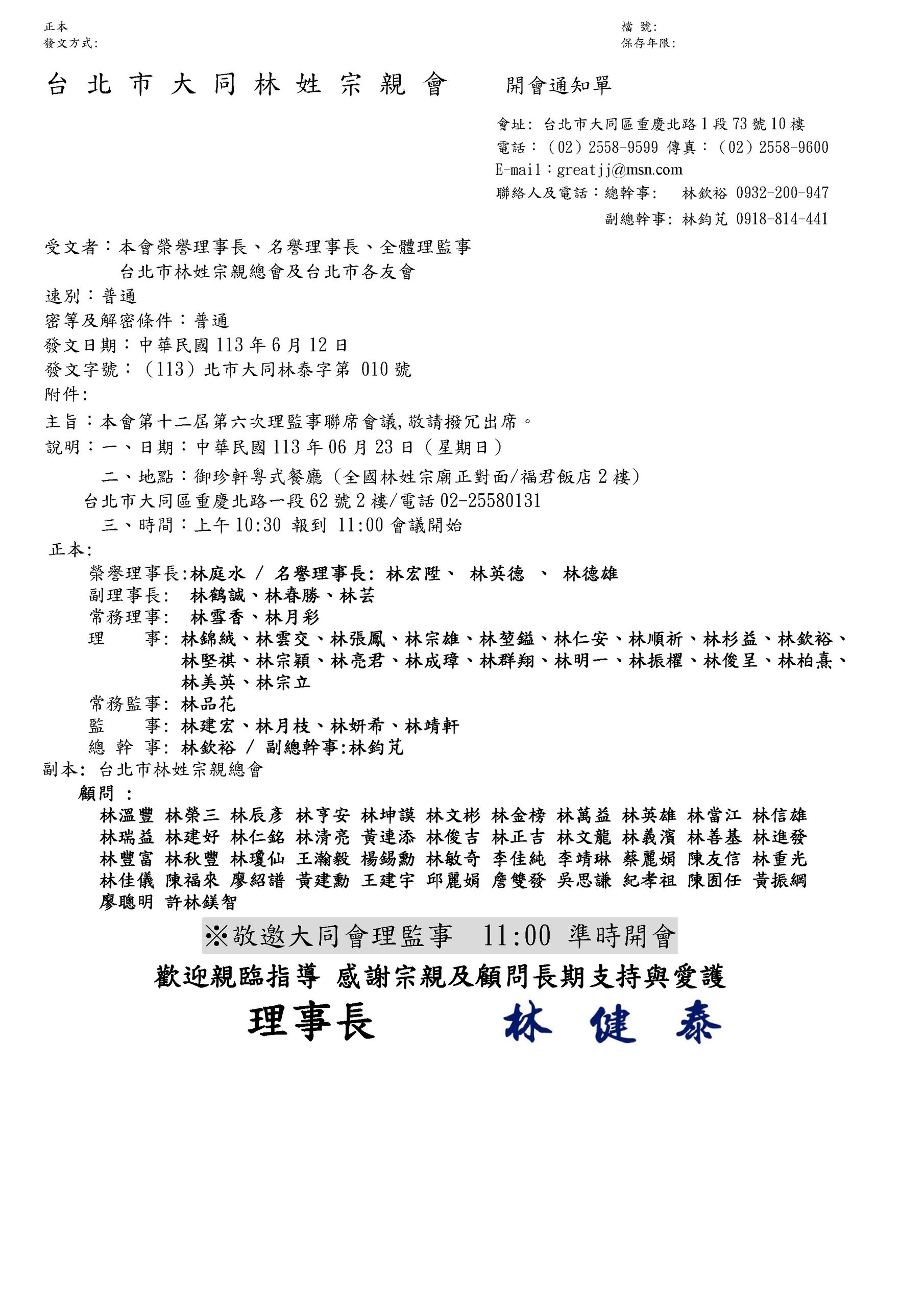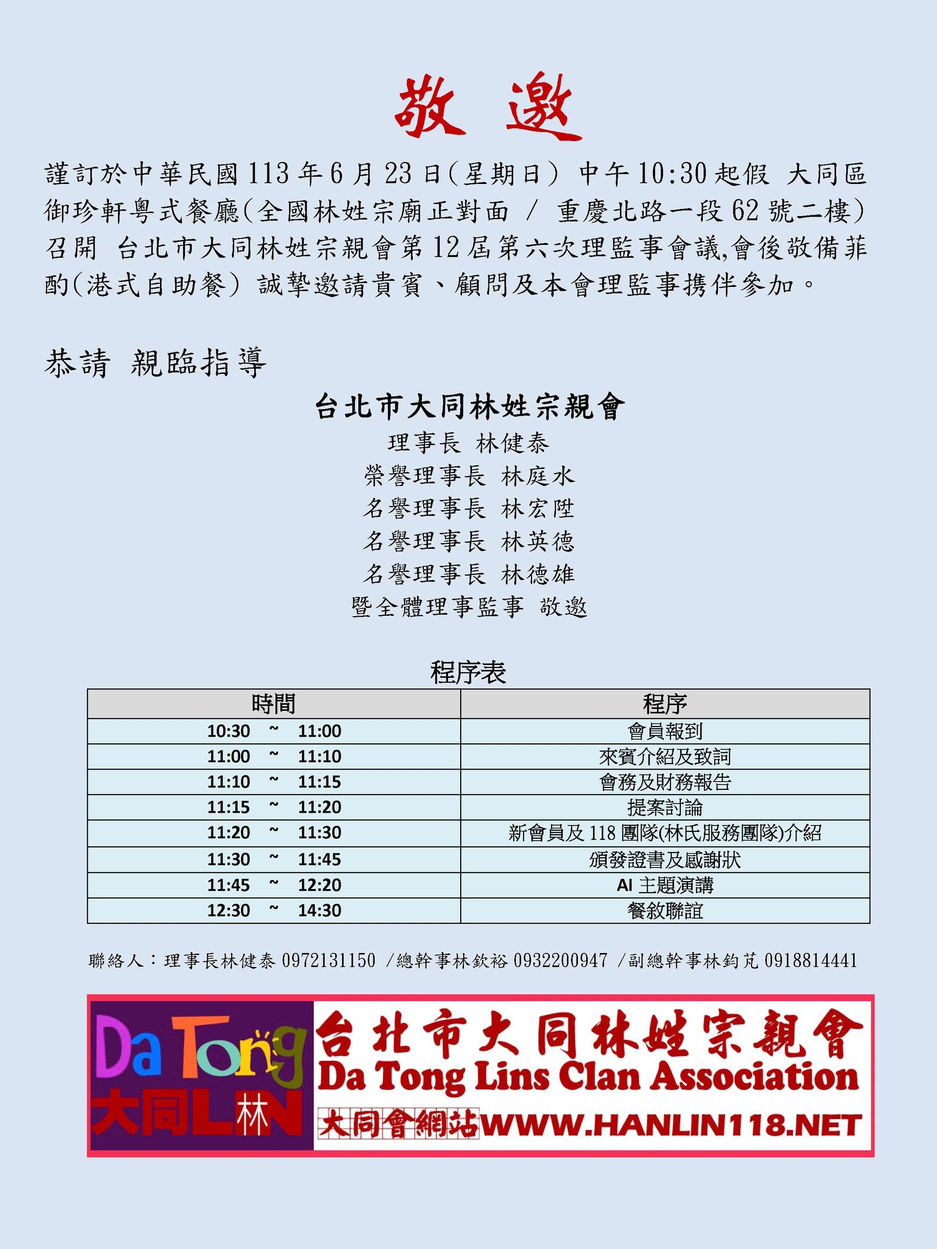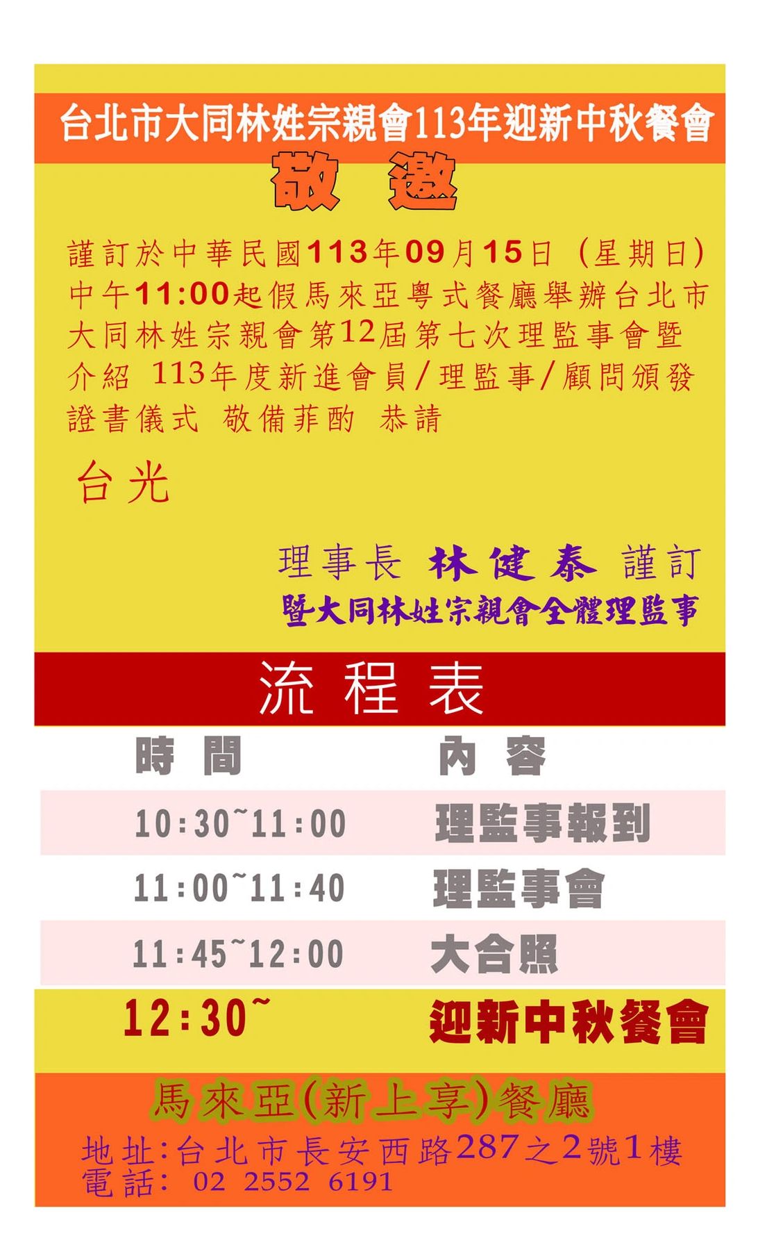 開會地點: 御珍軒粵式餐廳 (全國林姓宗廟正對面/福君飯店2樓)